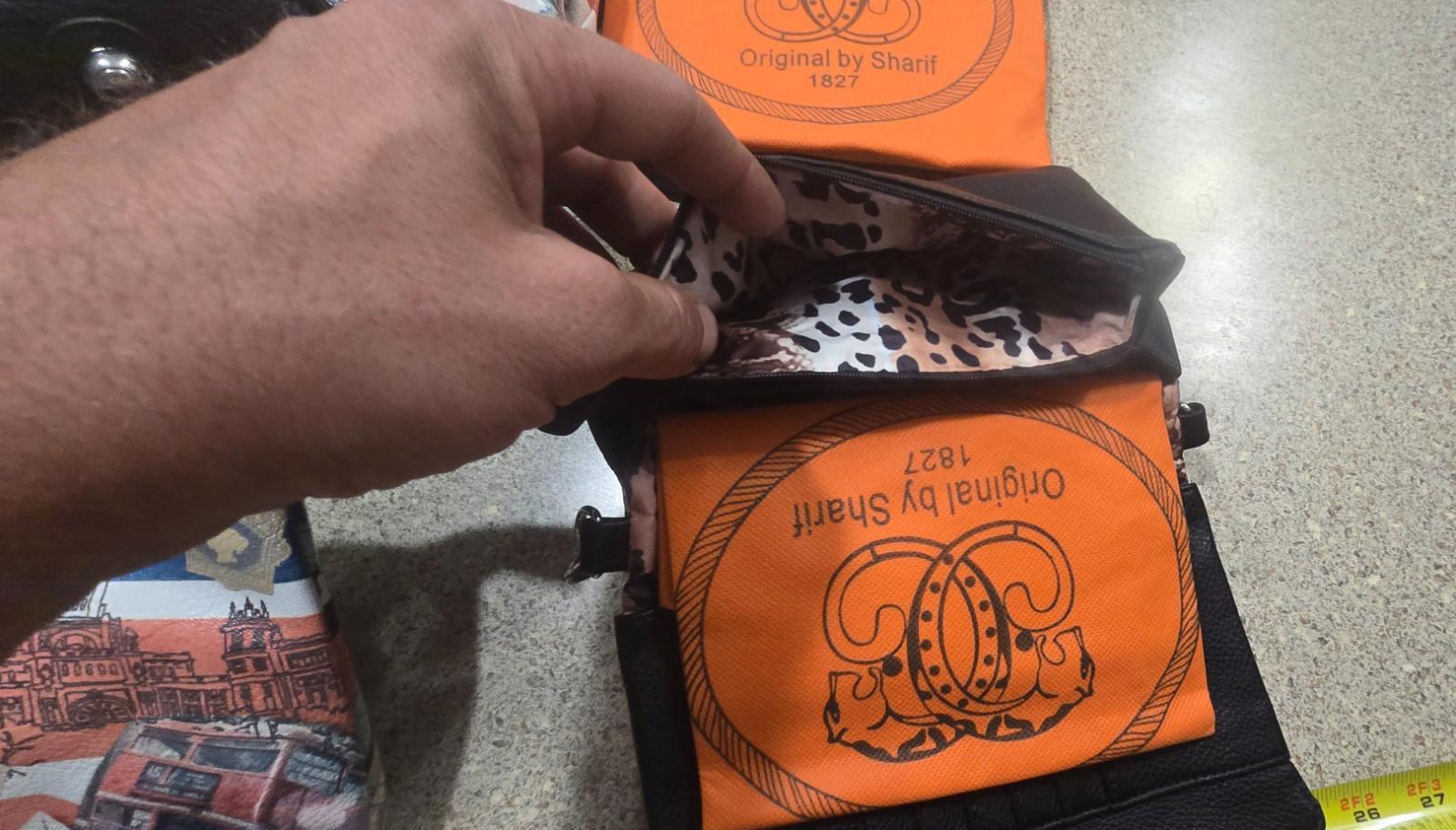 The product is a luxurious matching set of a London-themed tote, shoulder bag, and handbag by Sharif. The bags feature a black handle/strap, silver hardware, and a fabric lining with an animal print lining color. The exterior material is likely leather with a London print pattern, and the bags are designed with a zip closure, double handles, and inner pockets for added convenience. Perfect for women who appreciate high-quality accessories with a touch of London charm.