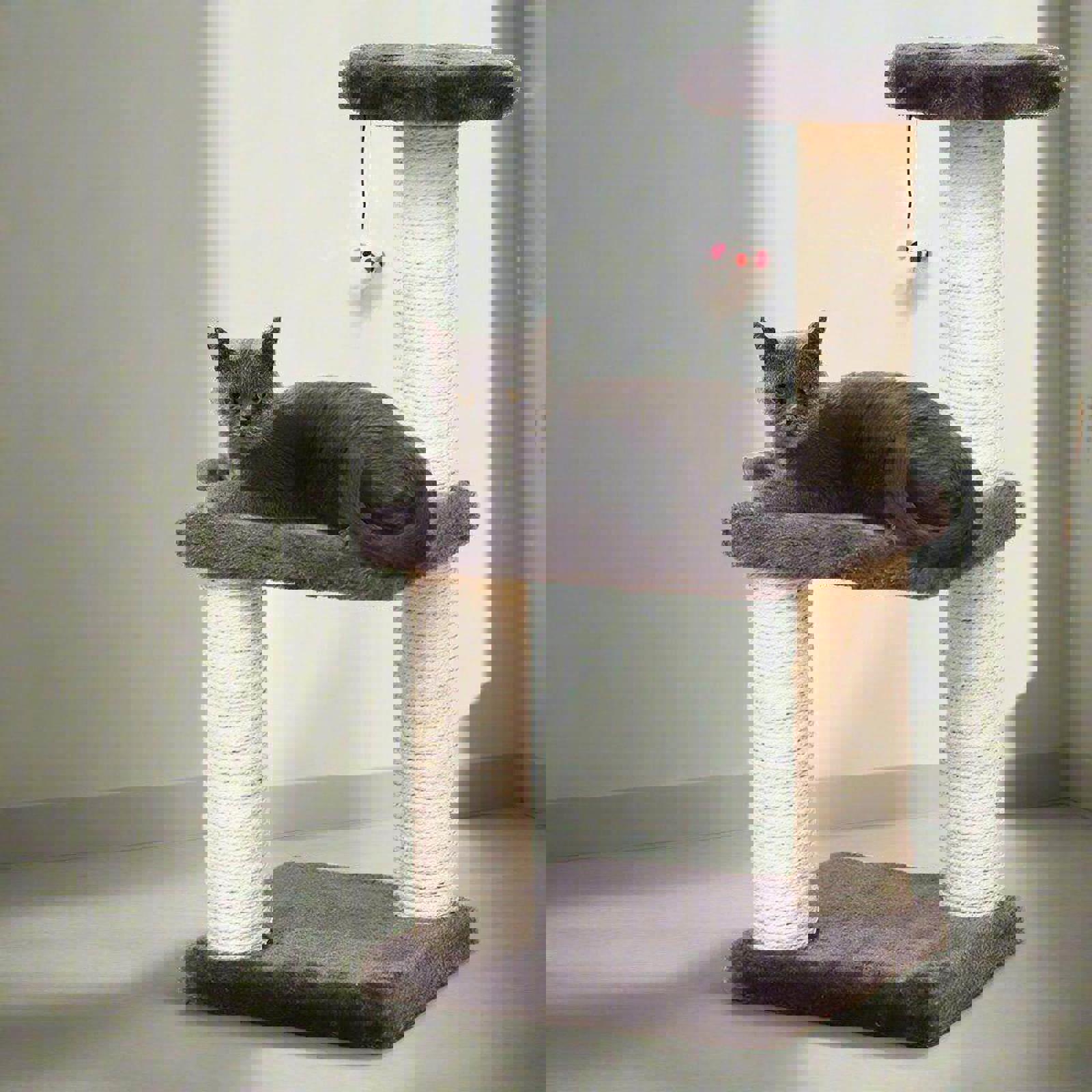 Durable Construction: Our cat tree is made from high-quality sisal and wood materials, ensuring a sturdy and long-lasting structure that can withstand the play and scratching of your feline friends.