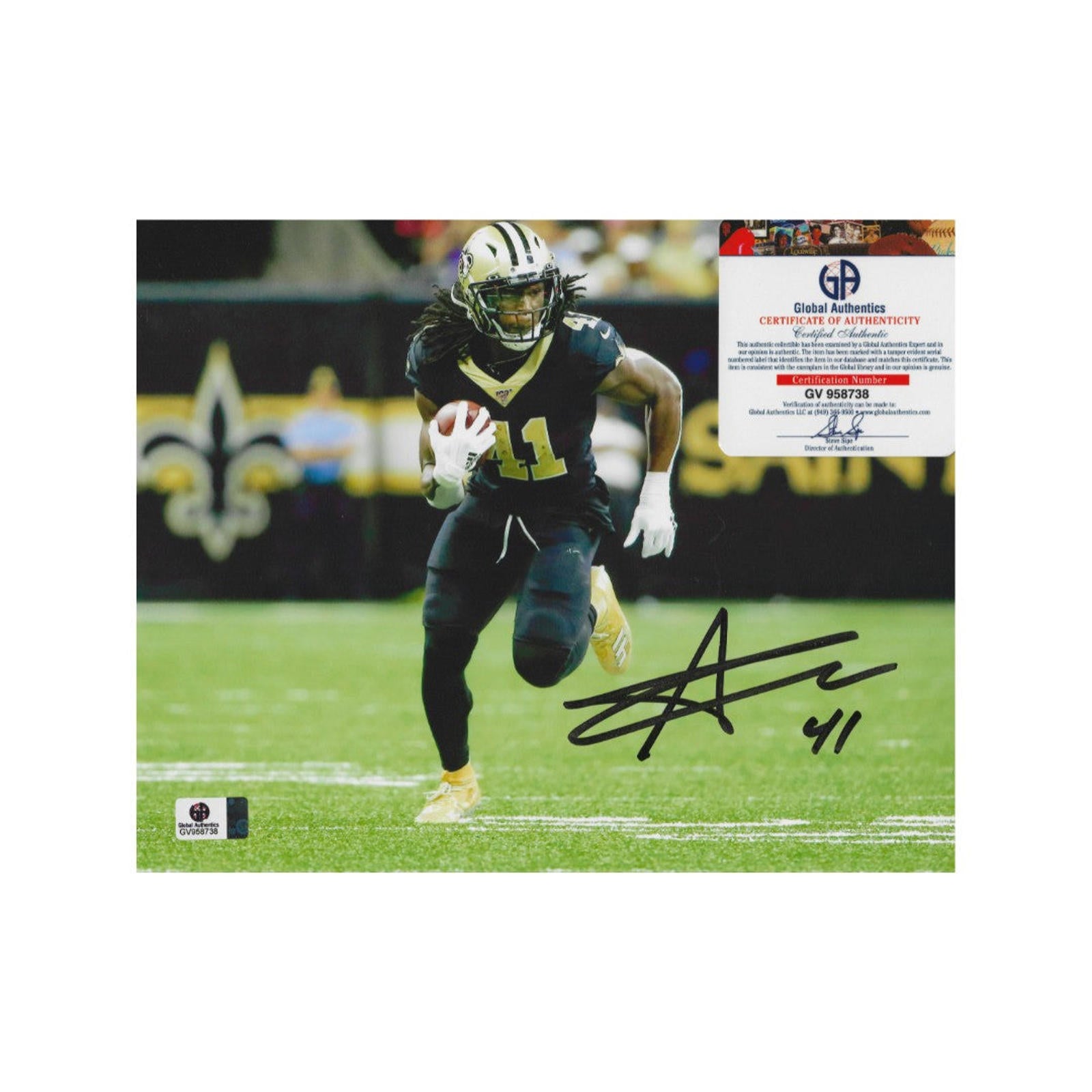 This is an incredible opportunity for fans of Alvin Kamara and the New Orleans Saints to own a piece of sports memorabilia that truly stands out. The item in question is an autographed 8x10 photo of Kamara, showcasing him in action on the field, capturing the essence of his dynamic playing style. Each photograph comes with a certificate of authenticity (coa), ensuring that the signature is genuine and adding value to the collectible. Whether you’re looking to enhance your personal collection or searching for the perfect gift for a fellow Saints enthusiast, this autographed photo is a fantastic choice. It not only represents Kamara's impressive career but also serves as a reminder of the thrilling moments he has brought to the game.