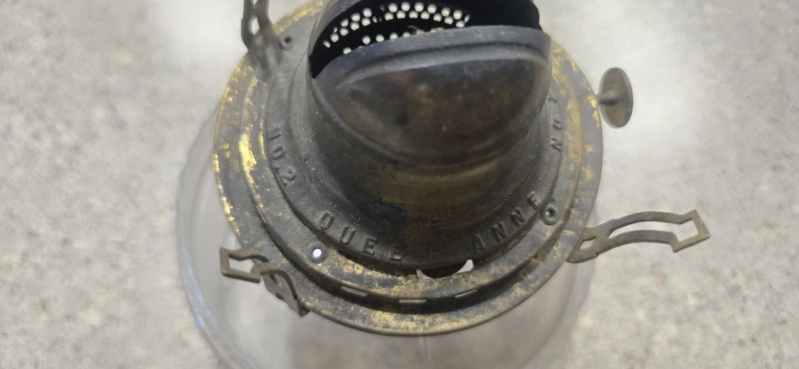 Antique Glass Scoville Mfg Co Queen Anne No. 2 Oil Lamp is a vintage piece from the 1910s. The lamp features a clear glass material with a glossy finish and a fire lighting technology. It has a rotary knob control and a beige cord color. The lamp is an original piece from the United States and has a Queen Anne style. It is a collectible item and falls under the category of lamps.