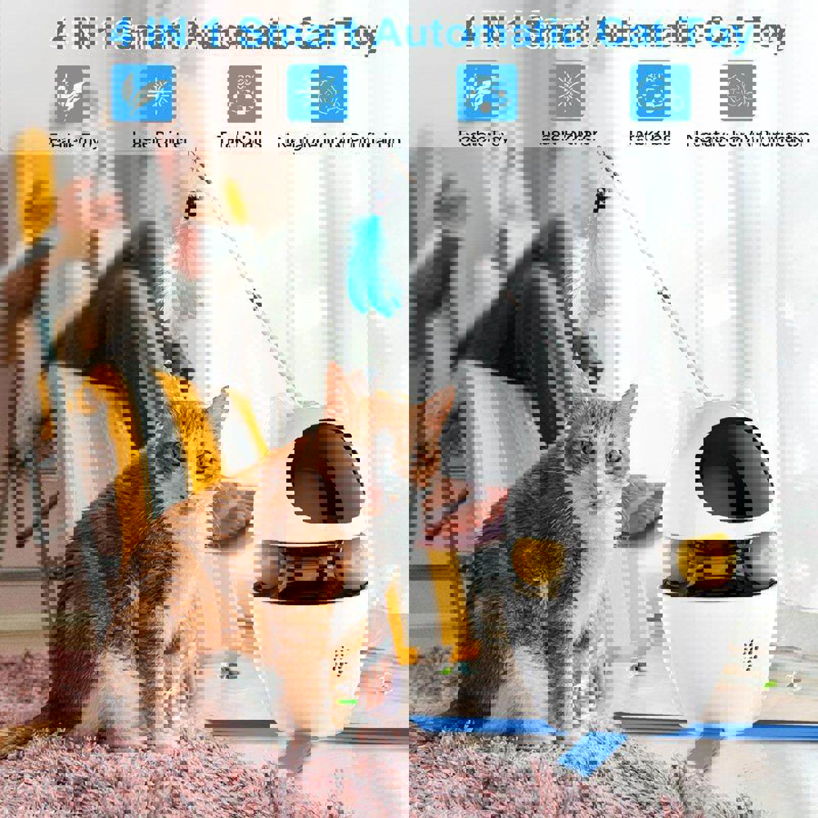 Why do you need to buy this 4-in-1 interactive toy for your pet? When you're tired and want to rest, but your kitty wants to play with you? When you go on a trip and worry about your furbaby getting lonely? Are you worried because your cat is too fat and lacks exercise? There are many types of cat toys on the market, and you don’t know how to choose. Modanais 4-in-1 interactive toys will solve your worries! Cats’ Favorite Toys: Affordable Cat Toys! ! Interactive cat toys combine cat feather toys with automatic cat light toys and cat ball toys. Free the master's hands. When your kitty gets tired of one, you can switch to another one to keep it fresh. Protection for cats: Transparent windows can effectively block light intensity. Safety for People and Cats The cat toy will automatically turn off after 30 minutes of operation in any mode to prevent cats from remaining excited about the game. Details of the interactive cat toy, professional for your cat: A. T