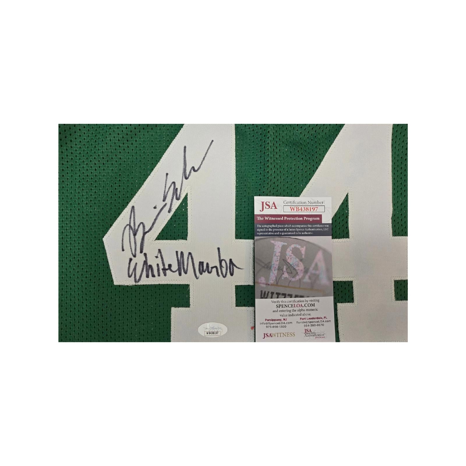 This is a Boston Celtics basketball jersey that has been personally autographed by Brian Scalabrine, a notable player in the franchise's history. The jersey is not only a piece of memorabilia but also comes with a Certificate of Authenticity (COA), ensuring its legitimacy and value for collectors and fans alike. The design of the jersey reflects the classic Celtics colors and style, making it a perfect addition to any sports collection or a unique gift for a basketball enthusiast. The signature of Scalabrine adds a personal touch, celebrating his contributions to the team and the sport. Whether displayed in a frame or worn during a game, this jersey serves as a tribute to both the player and the rich history of the Boston Celtics.
