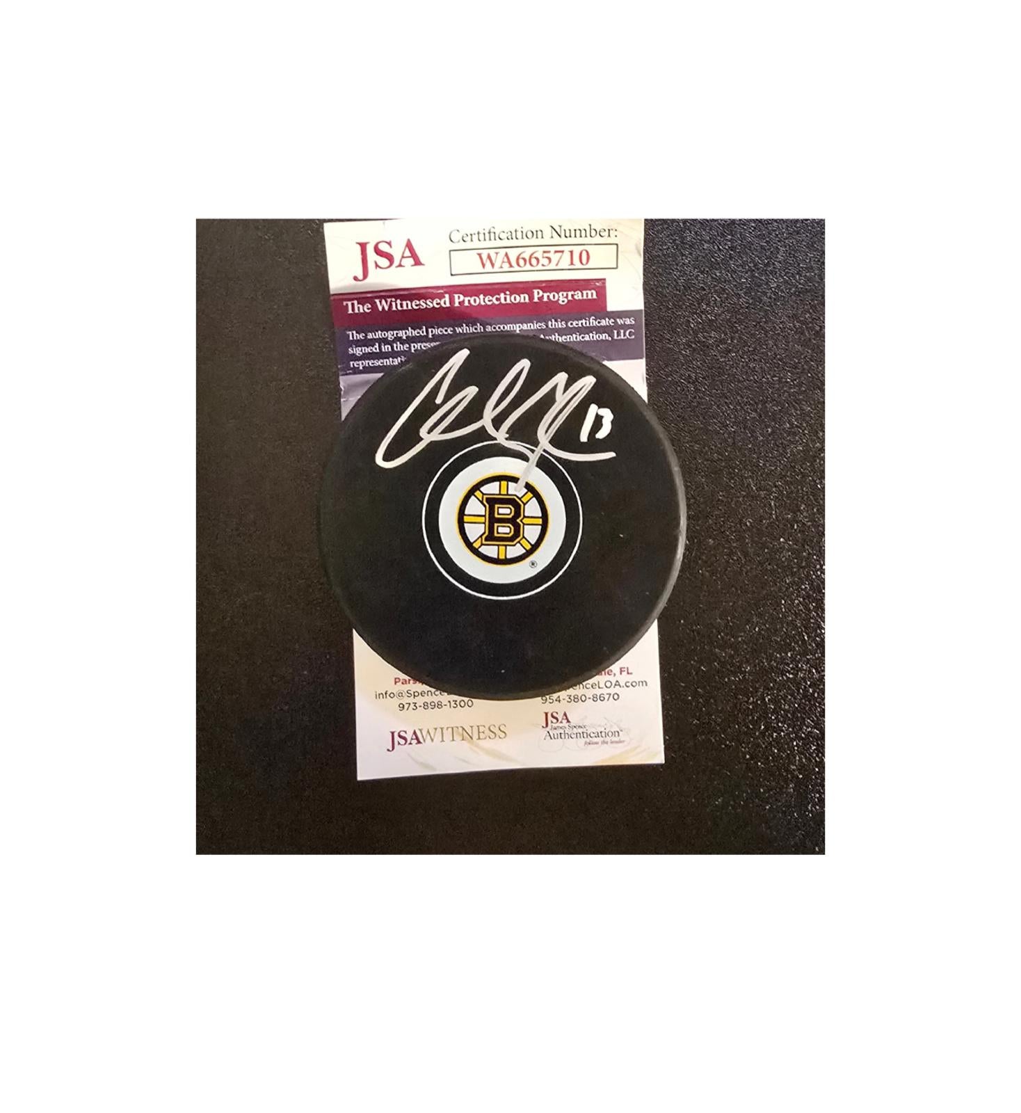 This Boston Bruins hockey puck, personally autographed by Charlie Coyle, is a remarkable piece of memorabilia for any fan of the team or the sport. The puck features Coyle's signature, which adds a unique touch to this collectible item, making it a perfect addition to any sports memorabilia collection. Accompanied by a Certificate of Authenticity (COA), this puck assures buyers of its legitimacy and value. The sleek design of the puck, adorned with the iconic Bruins logo, not only highlights the team's rich history but also serves as a tribute to Coyle's contributions on the ice. Whether displayed in a case or used in a game, this autographed puck is a testament to the passion and dedication of both the player and the fans.