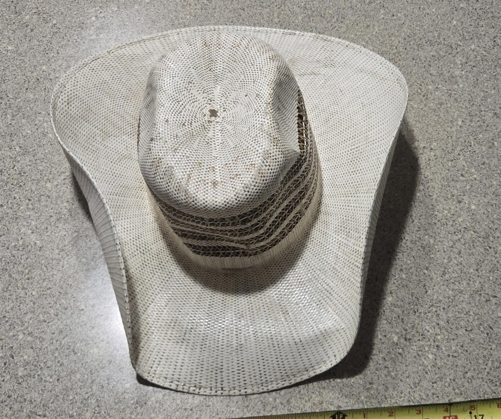 Justin Bent Rail Blaine Ivory & Brown Straw Wire Brimmed Cowboy Hat 58-7 1/4