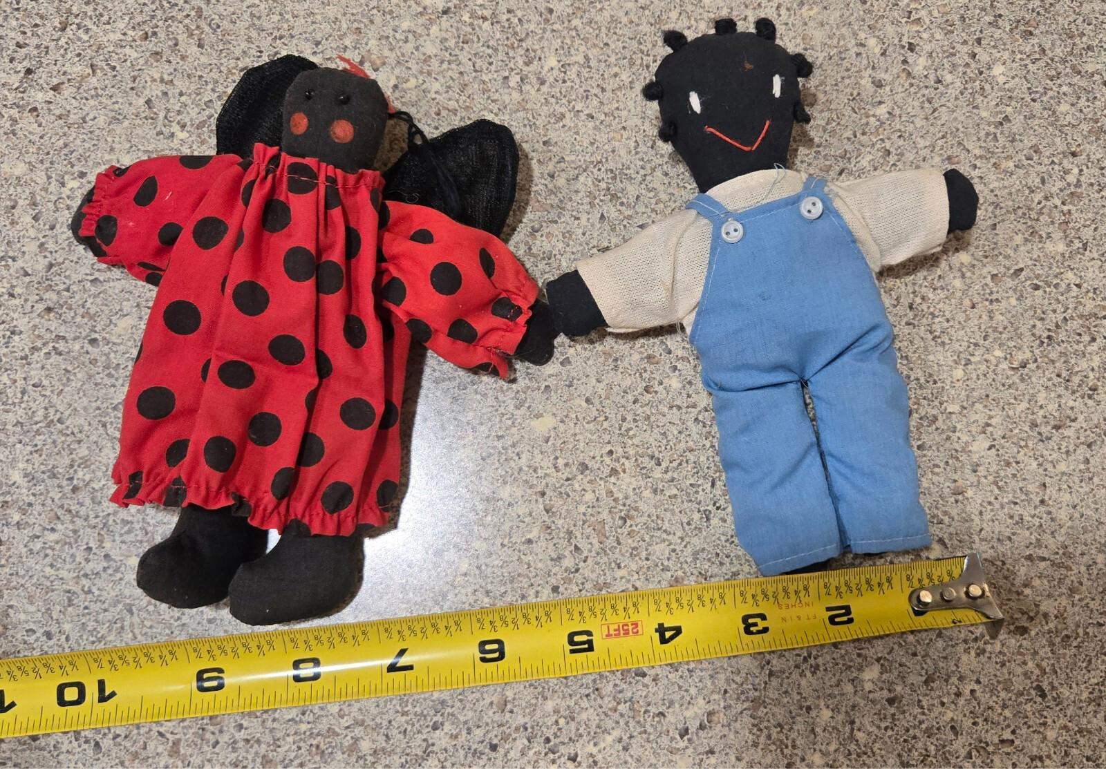 Discover a charming duo in our Ladybug Friend and Vintage African American Folk Art Hand Sewn Baby Doll set. Each doll stands at 7 inches, meticulously handcrafted with attention to detail, showcasing a lovely blend of culture and craftsmanship. The set includes both a boy and a girl doll, both adorned with black hair, reflecting the rich ethnic heritage of African American folk art.The dolls are a unique find, boasting a soft body that invites a comforting embrace. As collectible treasures, they come with an array of exclusive features such as being non-toxic, non-scented, and free from any batteries. These dolls are originals, celebrating the timeless allure of handcrafted dolls that resonate with both collectors and those who appreciate the beauty in handmade toys.
