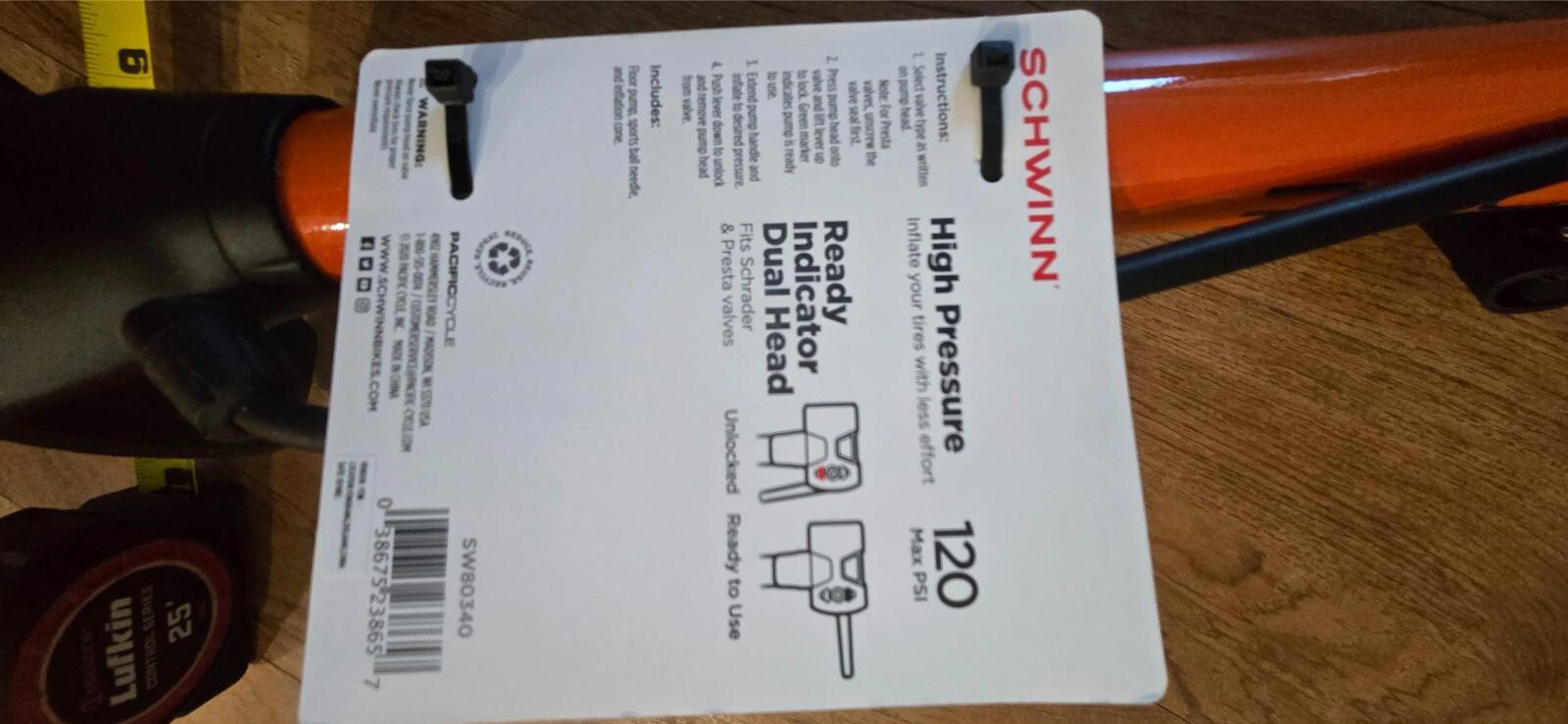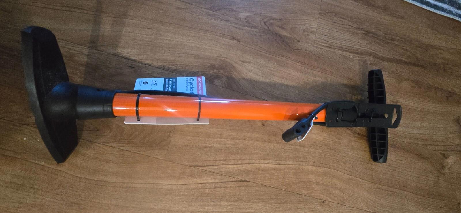Experience the efficiency and quality of the Schwinn Best Pro High Pressure Cyclone Floor Pump. Designed to cater to the needs of serious cyclists, this floor pump is a robust addition to any bike enthusiast's workshop. It comes in a vibrant orange color, adding a touch of style to your cycling accessories.Equipped with two adapters, the Schwinn ! Best Pro model ensures compatibility with a variety of tire valves. The high-pressure design is ideal for quickly inflating tires to the desired psi, making it a practical choice for both home use and on-the-go maintenance. Keep your ride top-notch with this reliable and versatile floor pump from a trusted brand in the cycling community.