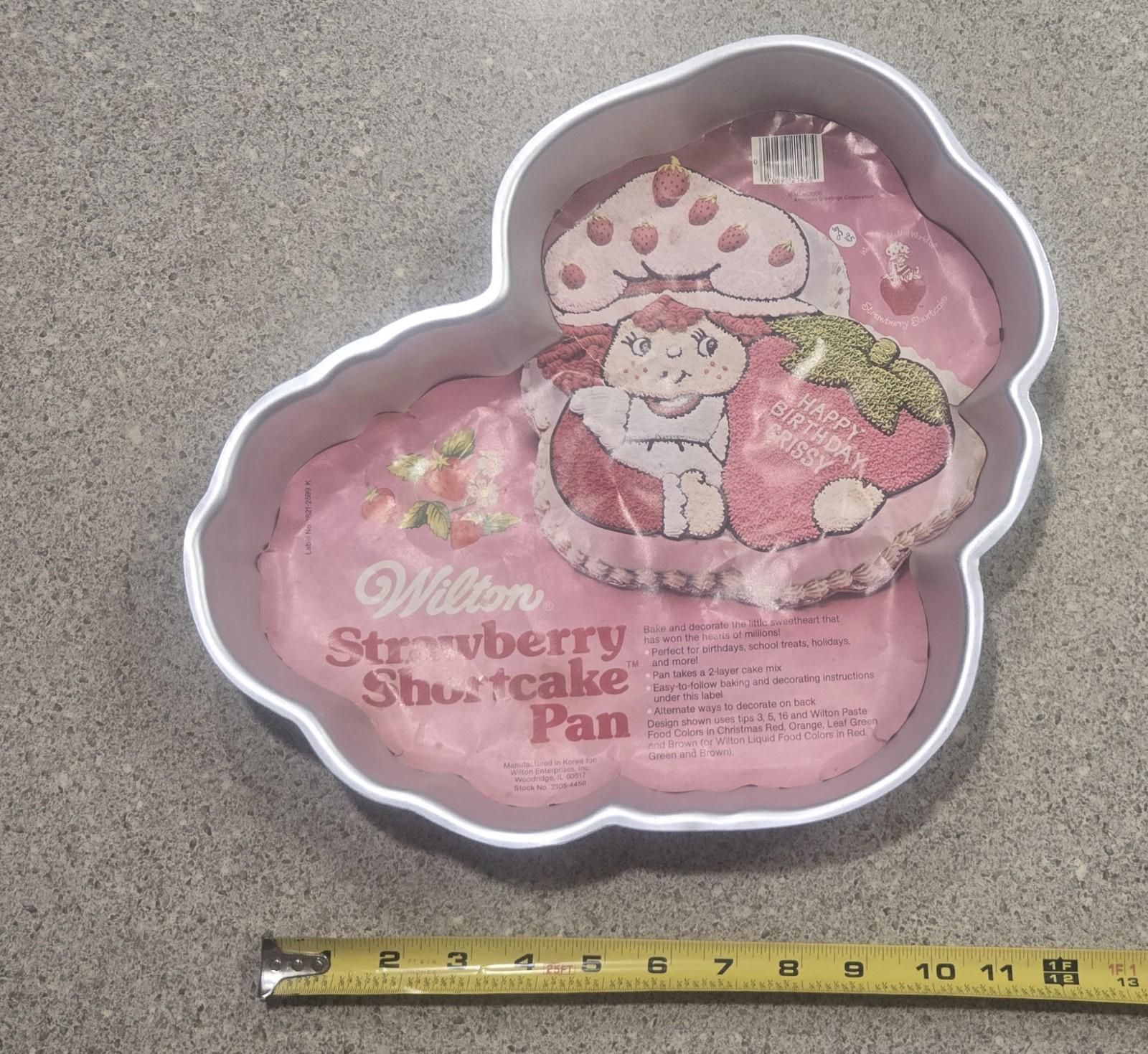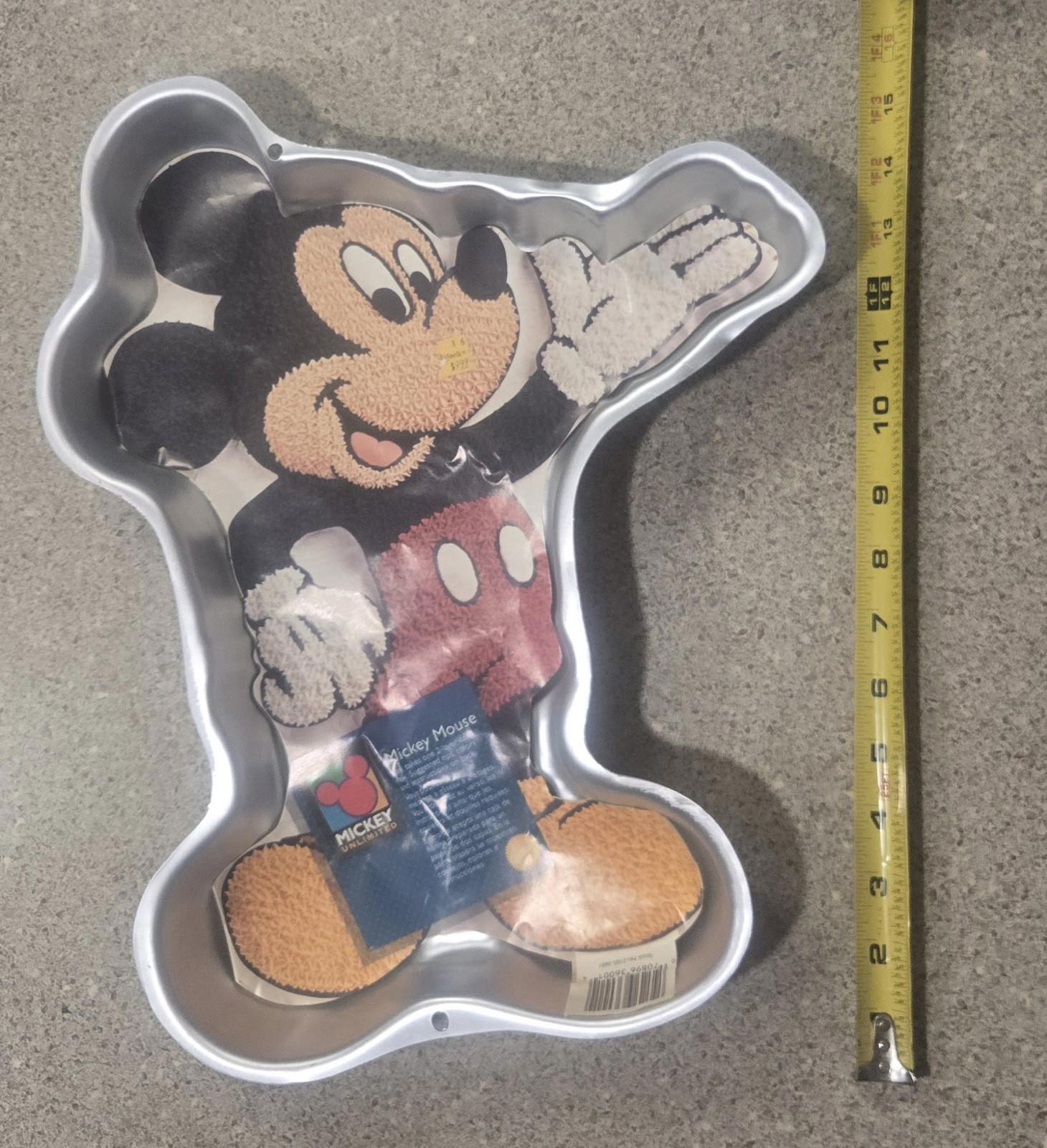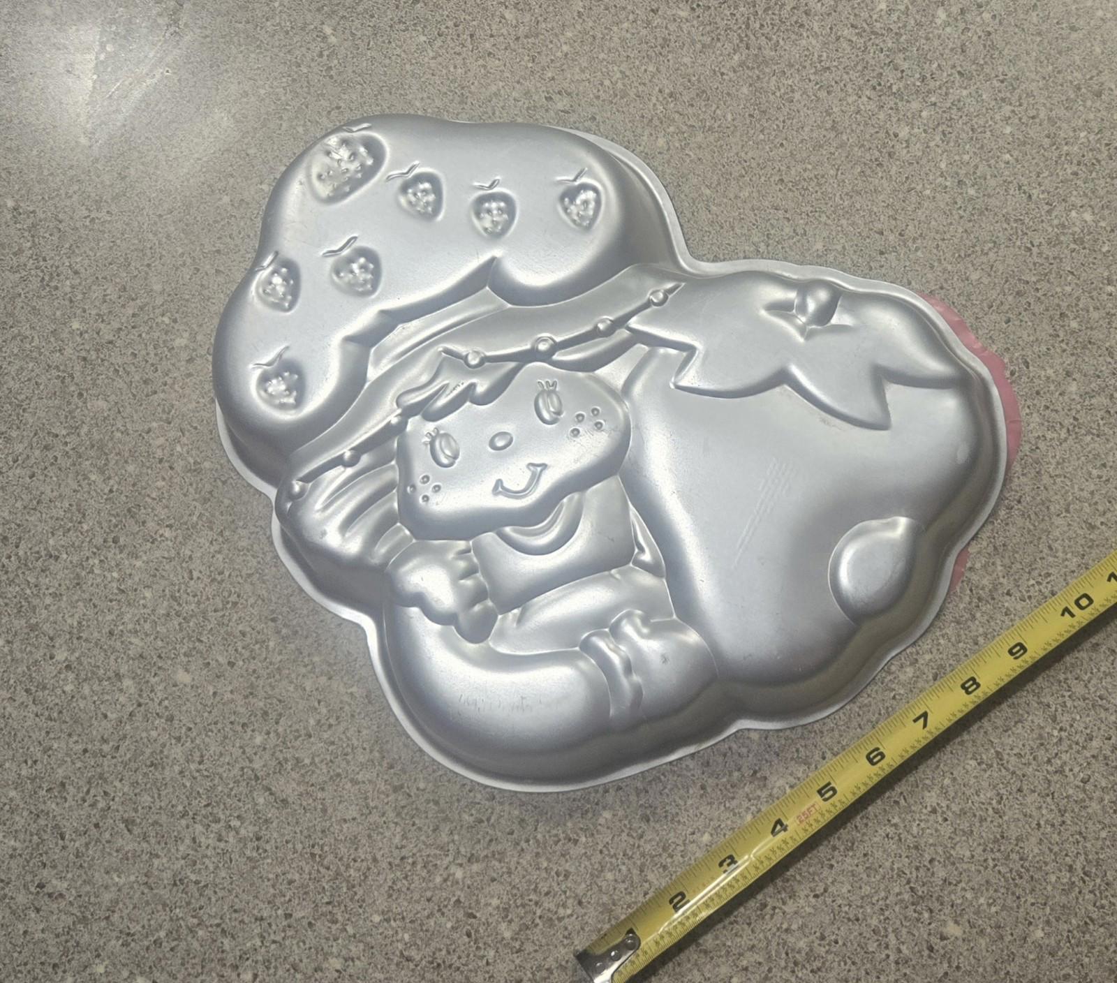 This set of 10 vintage Wilton cake pans features a variety of famous characters including Playboy, Elmo, Pooh, Barney, Mickey Mouse, and Strawberry Shortcake. Made of durable aluminum, these pans are perfect for baking cakes and other treats. The set is an original from the 1990s and has been well-maintained over the years.